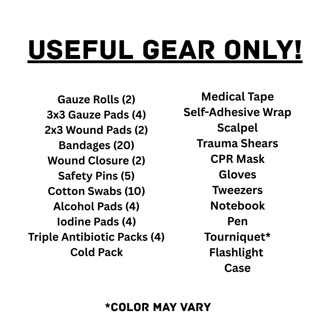 Each item is chosen for real-world usefulness—helping you manage injuries, provide basic care, and stay organized when every second counts. The kit is suitable for everyday preparedness, travel, outdoor activities, vehicles, and workplaces.